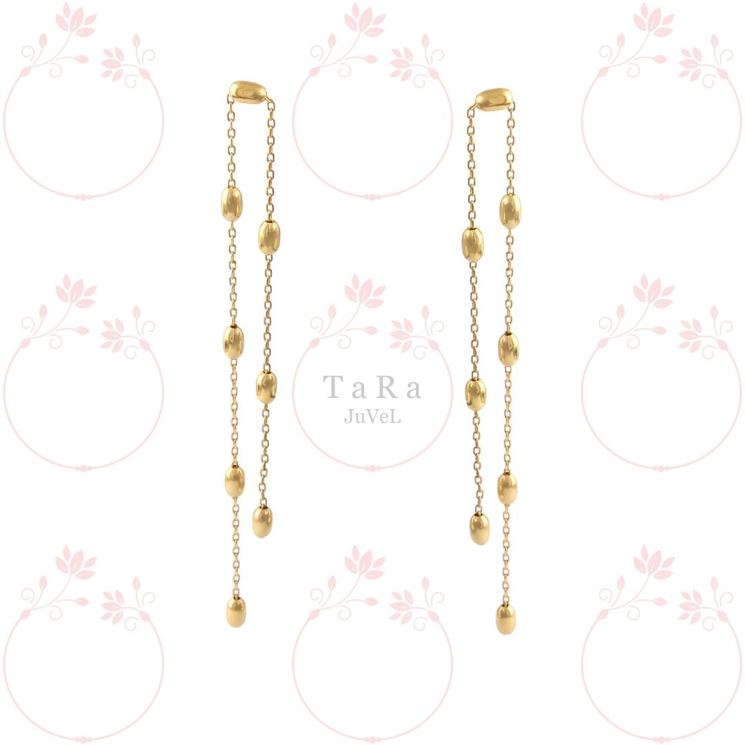 Our Golden Ball Danglers are meticulously crafted from high-quality materials, featuring a lustrous golden finish that adds a touch of luxury to the design. The use of premium materials ensures both durability and an irresistible shine, elevating these earrings to a level of understated elegance.
